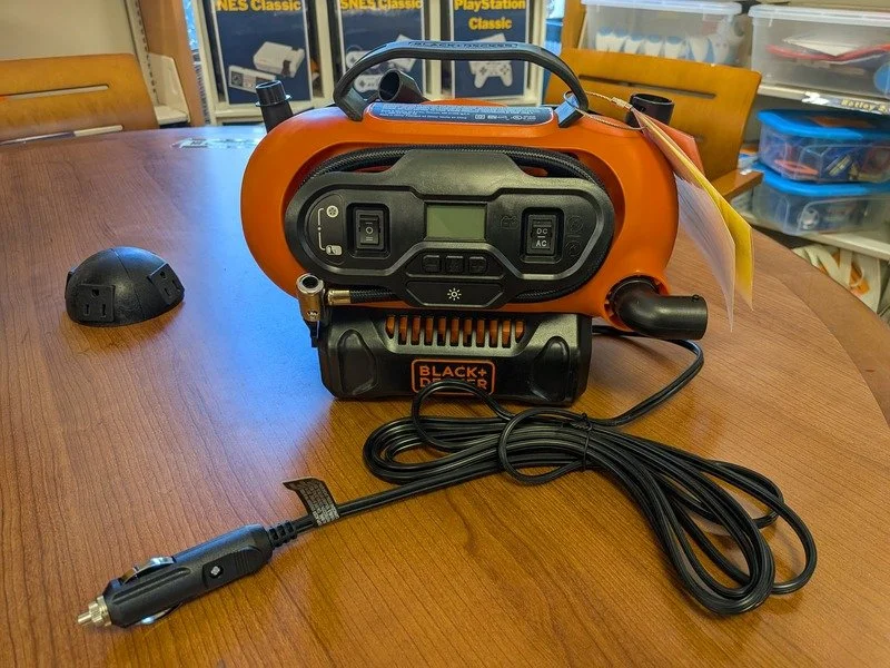 The Portable Air Compressor (Tool Only), handles all inflation needs with 3 power sources, high-volume output, and automatic shutoff. Includes battery and charger.